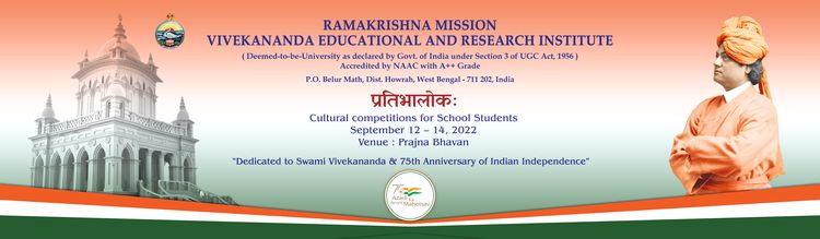 प्रतिभालोकः — Cultural Competitions like essay writing, painting, debate competitions, yogasana demonstration, etc were organized for students of many schools of West Bengal where Vivekdisha free tuitions are conducted (RKMVERI Outreach activity) on the occasion of 75th Anniversary of Indian Independence (Azadi Ka Amrit Mahotsav) and in memory of Swami Vivekananda on 12th, 13th and 14th of September 2022 at the Belur Main campus of RKMVERI (Deemed University).